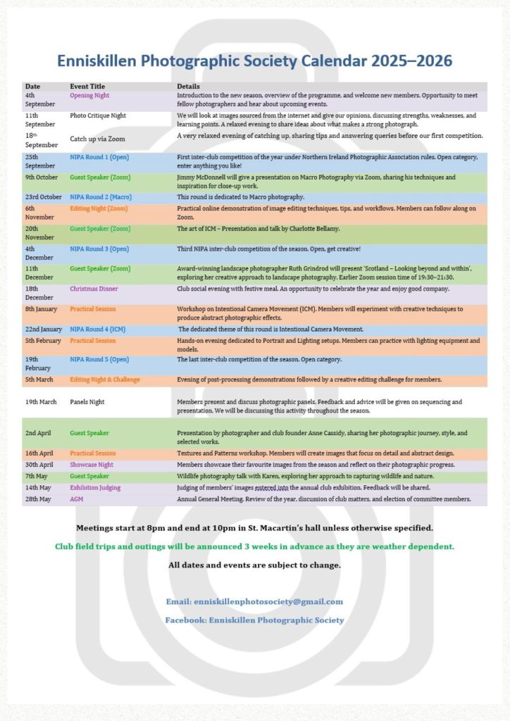 Enjoy the exciting world of photography with the Enniskillen Photographic Society